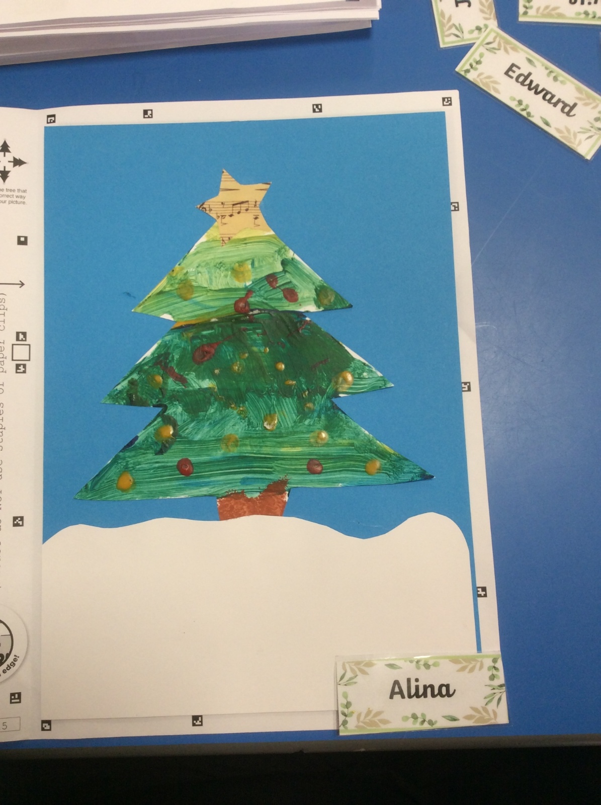 We applied our colour mixing skills to create different hues of green to create our own unique Christmas tree.